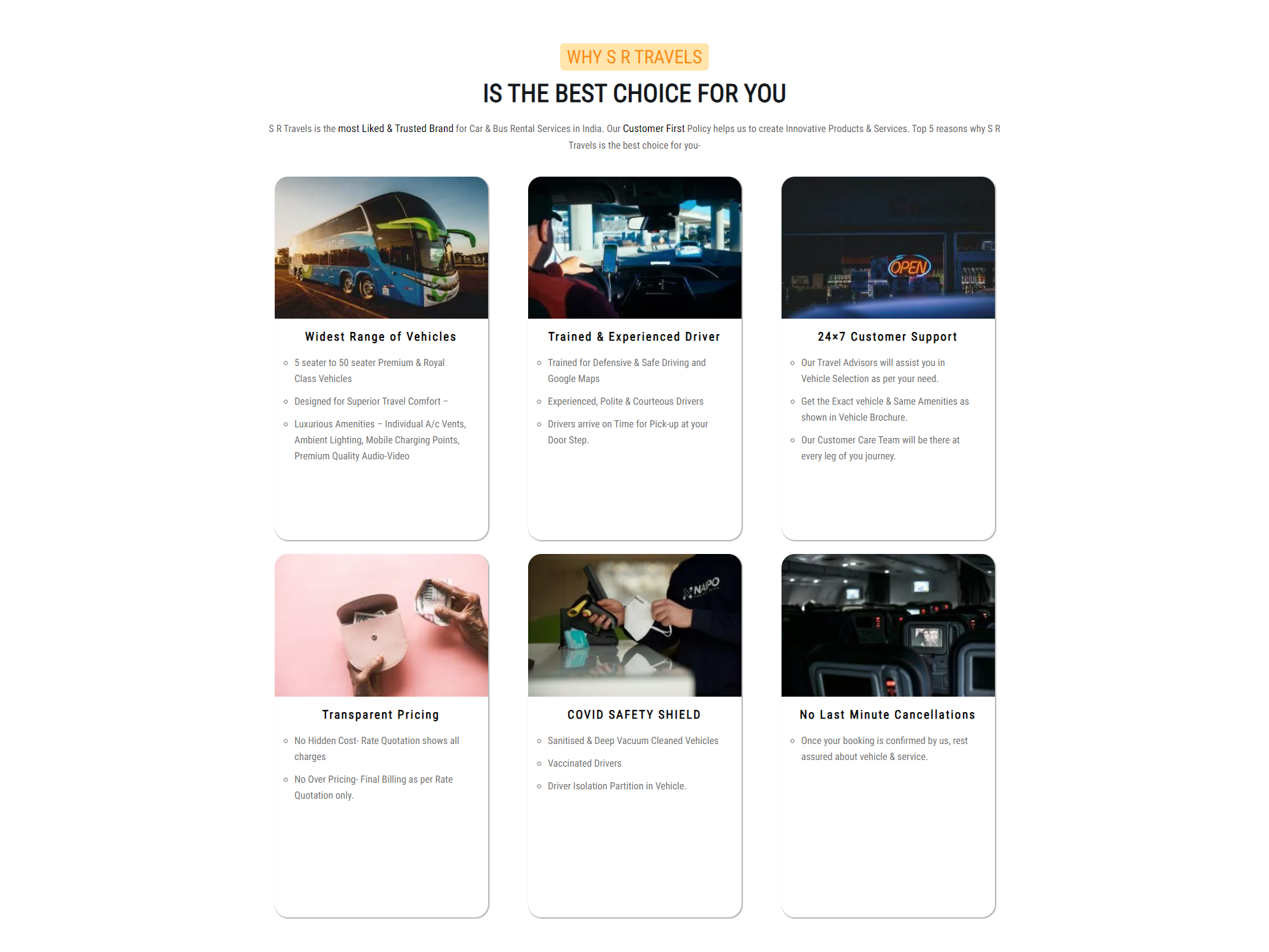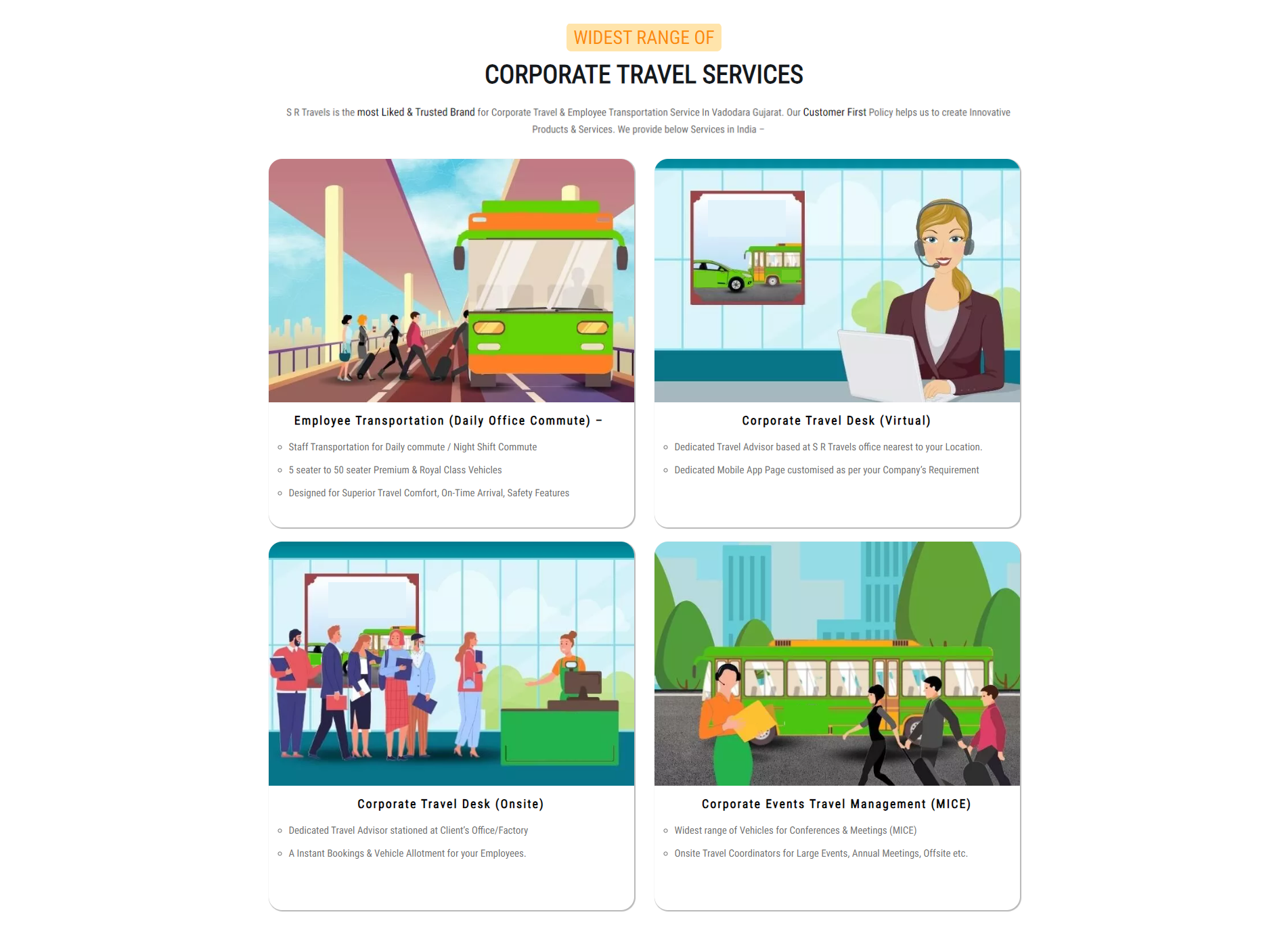 "S R Travels" made a humble start in the year 2010 in Vadodara, Gujarat under the banner of S R Travel House. Founded by the “Mr Sachin Mishra”, the company started its operation with only 2 buses and now has over 50+ buses in its fleet along with over 100 groomed drivers and 38 travel experts. We believe in quality hence the buses owned by us meet our high standards of safety and quality. We operate through buses like Volvo, Tata, Ashok Leyland, Cerita and Isuzu.